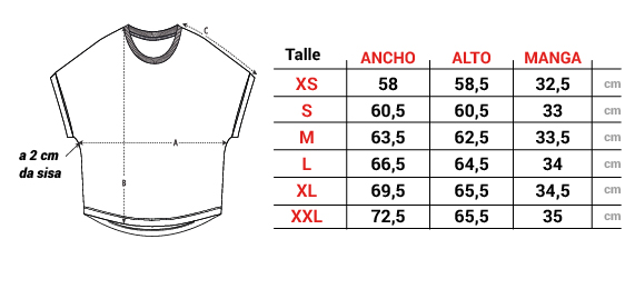| Tallas | S, M, L, XL, XXL |