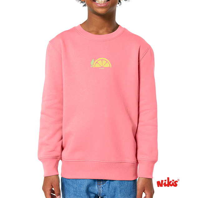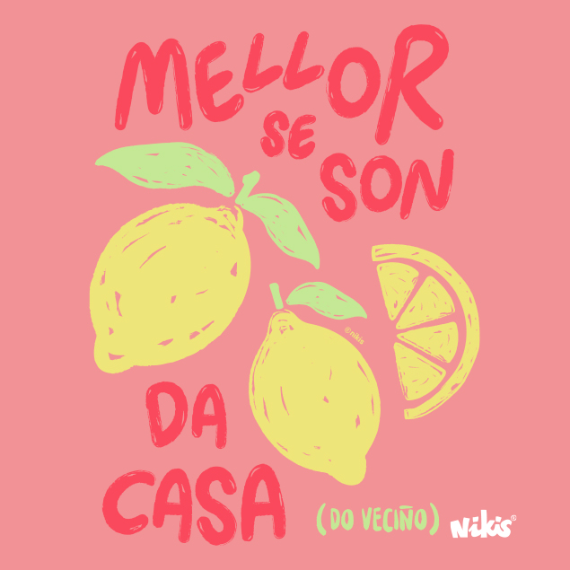 Suave, fresca e con moito estilo: este suadoiro infantil rosa con ilustración de limóns e a frase ‘Mellor sonse dá casa’ é unha declaración de proximidade e alegría galega.
